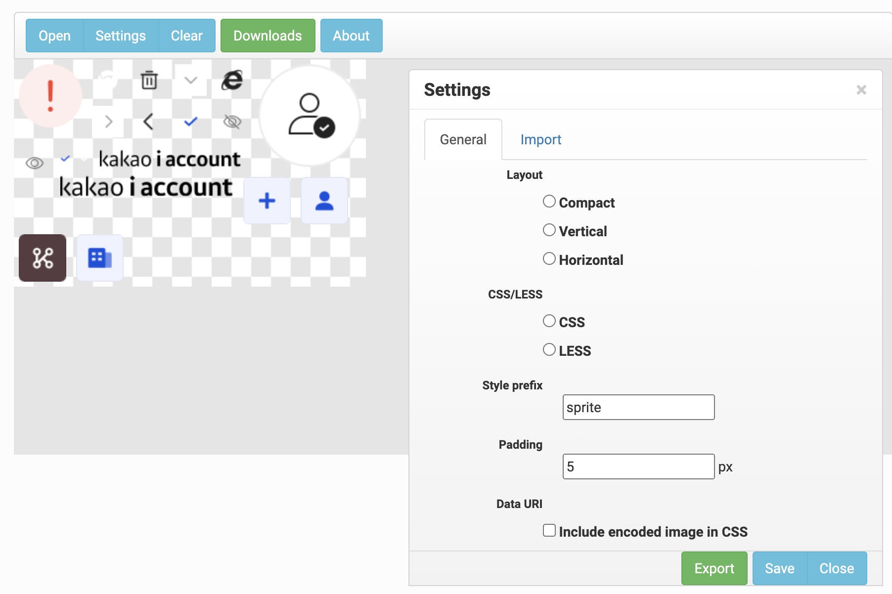 3. 1배수 파일들로 먼저 스프라이트를 생성합니다. (간격 5px)