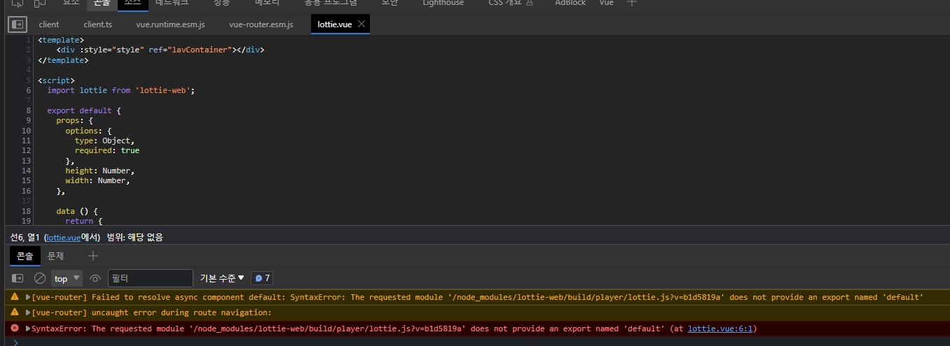 흠.... vue2.7 + vite (windows 환경) 쓰고 있는데 vue-lottie 쓰려고 예제대로 다 했는데 계속 이 에러가 뜸